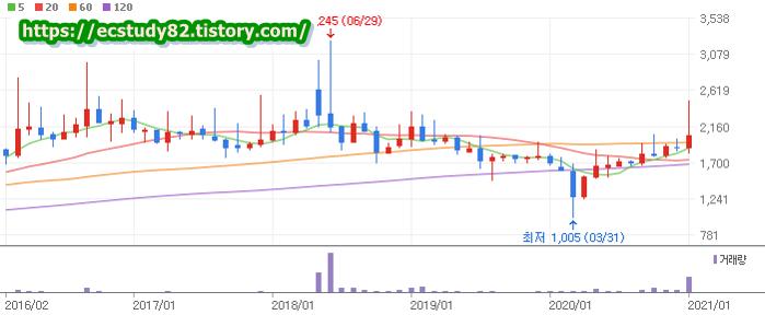 주포스코 가공센터로 주포스코에서 생산한 냉연 및 열연 철강재를 공급받아 고객사들이 주문하는 규격으로 전단 절단 가공하여 공급하고 있음. 2021사업보고서 경남스틸 주가 전망 1분기 보고서 실적 반영 by 합리적인 투자 의사 결정을 위한 정보 공유 블로그 재테크사랑 2021. 경남스틸 주가 전망 출처 - 네이버 금융.